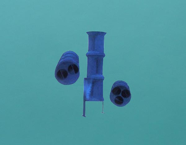 (6)为防止活性污泥在空气管道内沉积,引起管道堵塞,可在配气管末端加一个90℃弯头,管顶端朝池底方向开一个直径ф10毫米的小孔,以便排出沉积物。